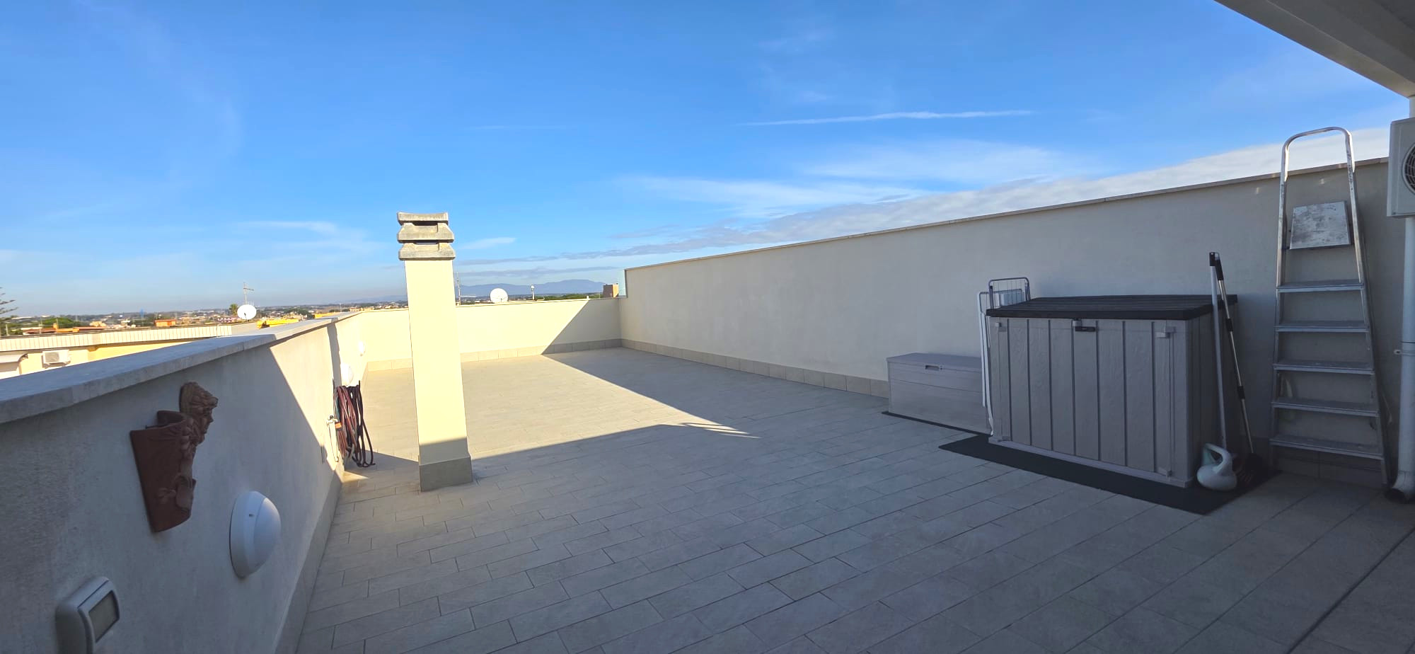 Nettuno centro zona Santa Barbara - Via Santa Barbara. In elegante complesso di recente costruzione (Anno 2018) con finiture in marmo. Proponiamo in vendita un grazioso appartamento di 65 mq posto al 3° ed ultimo piano con ascensore. Internamente l'abitazione presenta un soggiorno con angolo cottura, corridoio per accedere alla zona notte con 2 camere da letto ( camera matrimoniale e cameretta) più bagno finestrato con box doccia. Balcone a livello di 15 mq con scala esterna per accedere all'ampio terrazzo sovrastante di 100 mq con gradevole vista panoramica sulla città, dove troviamo un comodo locale tecnico di 17 mq. Completa la proprietà un posto auto scoperto all'interno del cancello dello stabile. L'immobile si presenta completamente ristrutturato con riscaldamento autonomo, climatizzatori, infissi doppio vetro pvc con taglio termico insonorizzati, tende da sole e zanzariere. La zona è servita da mezzi e negozi. L'appartamento è dotato inoltre di un'esposizione ad ovest e un'ottimo efficentamento energetico collocandosi nella categoria B. Possibilità di poterlo visionare previo avviso telefonico: 06/9880696-06/98578111 o tramite whatsapp 392/6926874 . Il nostro studio si trova in zona Nettuno centro (RM), Via Carlo Cattaneo n. 64/A.